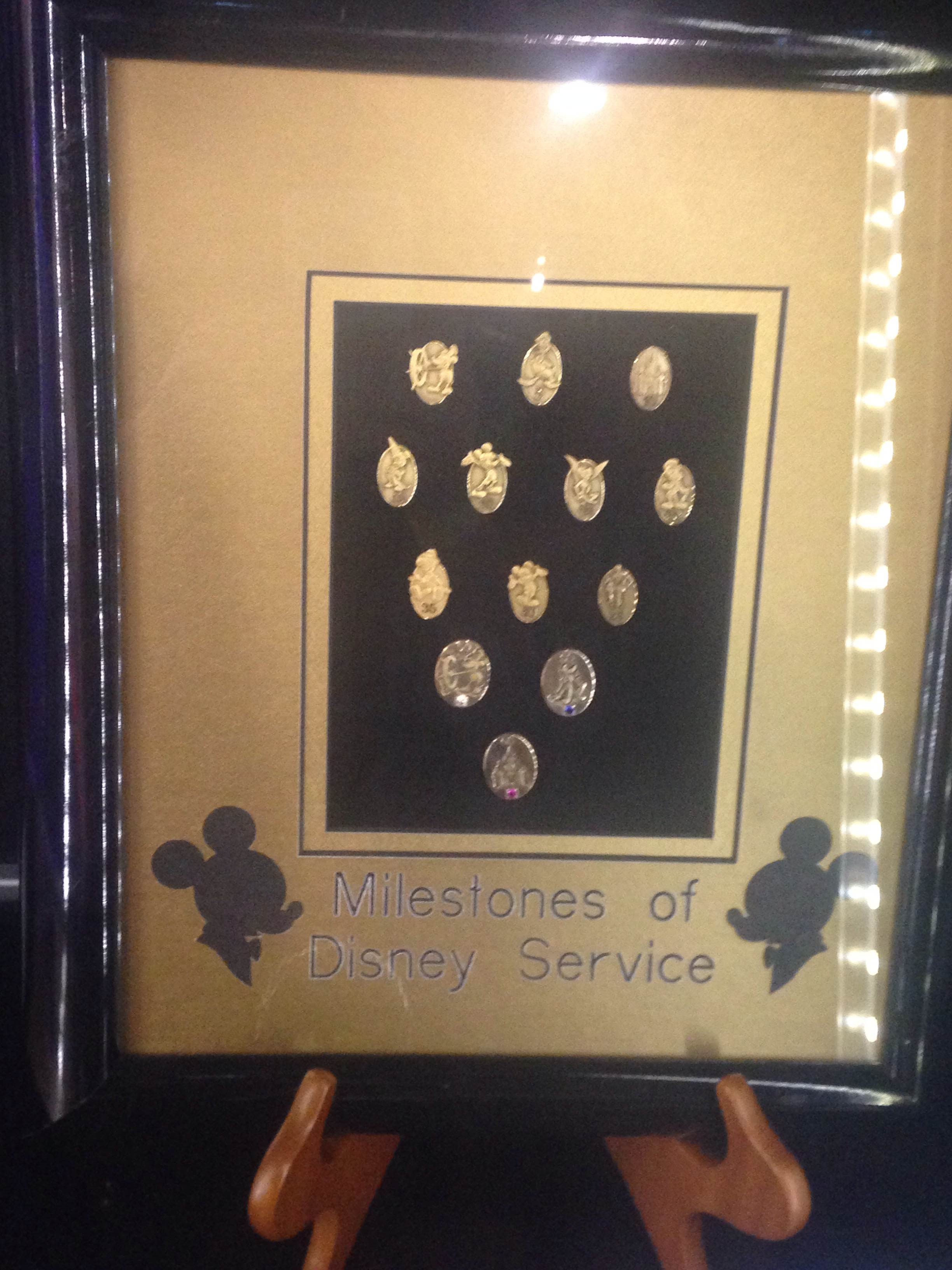 These are the different pins that Cast Members receive depending on how long they have been with the Company. So far I only have 1 but I hope to earn several more.