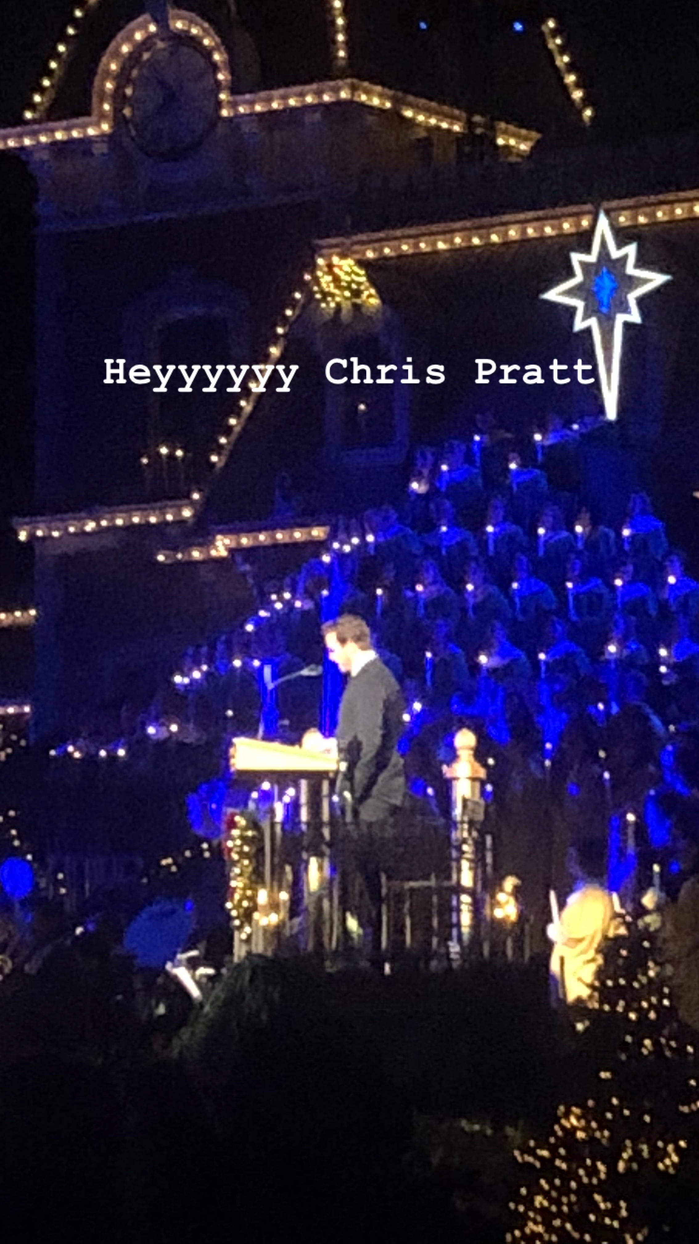 After the choir was assembled and their opening songs were finished, Bill Rogers (also known as “the voice of Disneyland” or the voice you hear for all Disneyland announcements) introduced the night’s guest speaker: Chris Pratt.