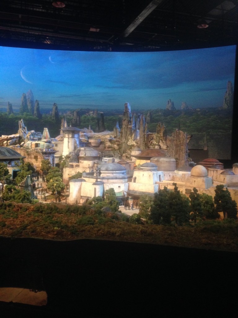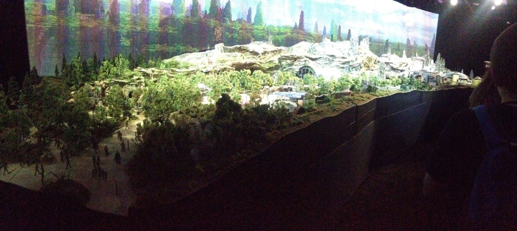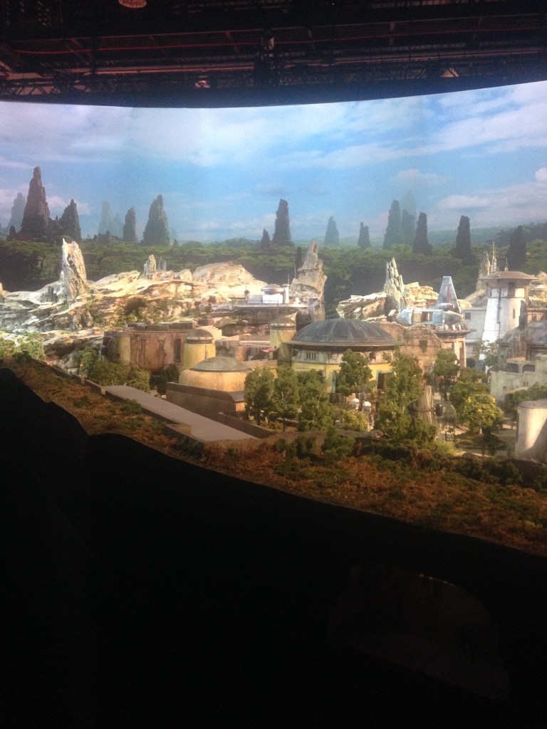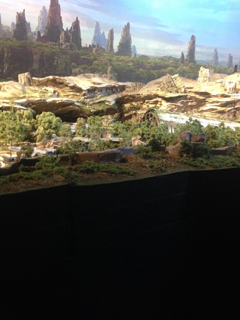 After the panel, Shelby and I got a small lunch and explored the Walt Disney Parks & Resorts pavilion. In 2017, they were focusing on the hype surrounding the construction of Star Wars: Galaxy’s Edge. There was concept art and models for what the Imagineers were brainstorming and a large model that showcased the layout of the new land. I think we spent a good hour or so staring at all of the details of the model.