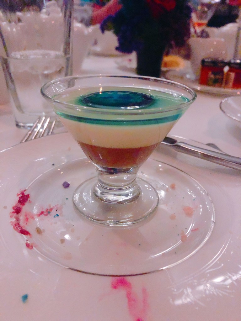 The multi-layered pudding was themed around Madame Leota, the medium who holds a seance during one of the more popular scenes in the attraction. Her ghostly head is encased in a crystal ball that floats above her table as she call on the spirits of the Mansion to materialize.