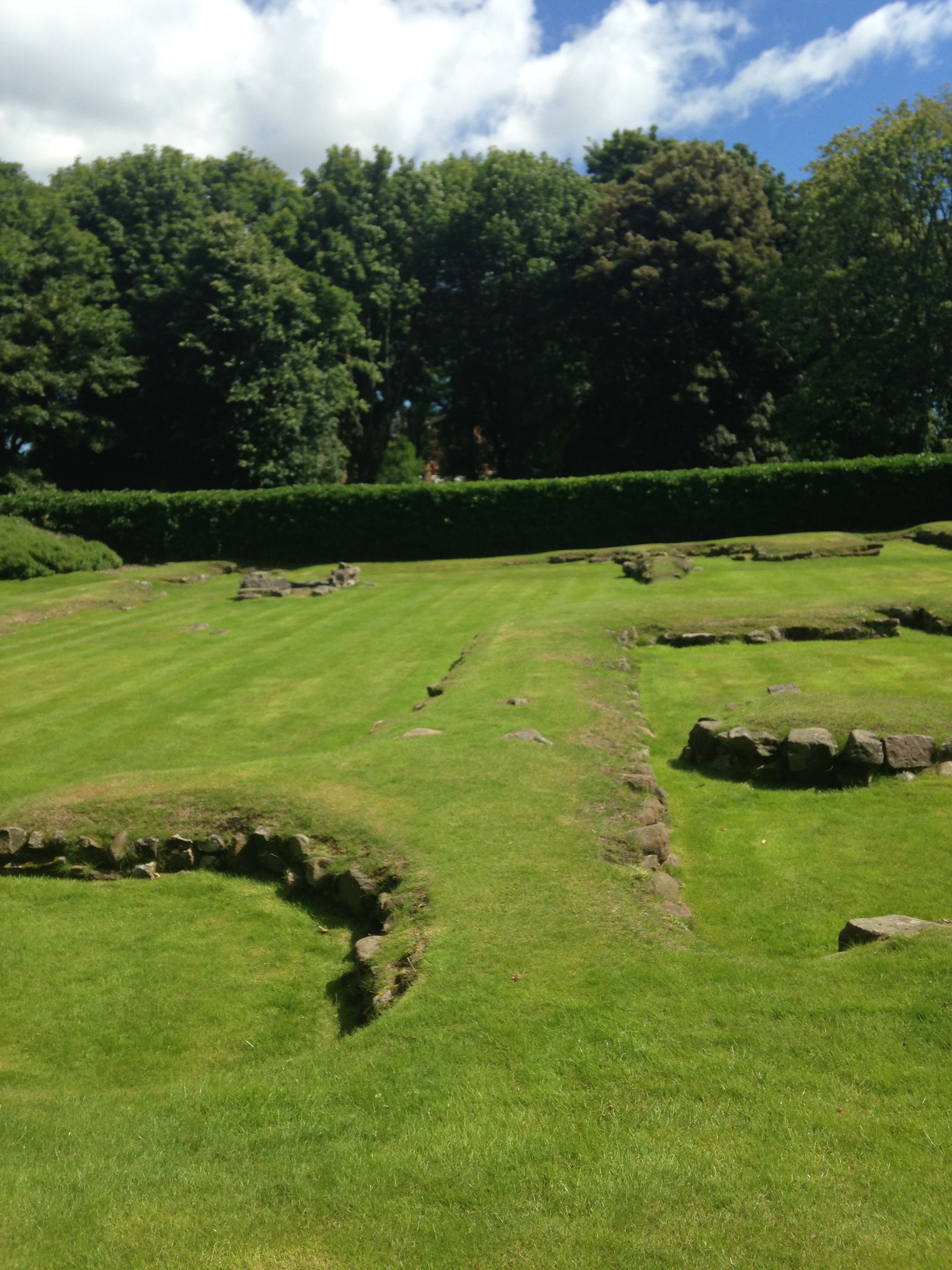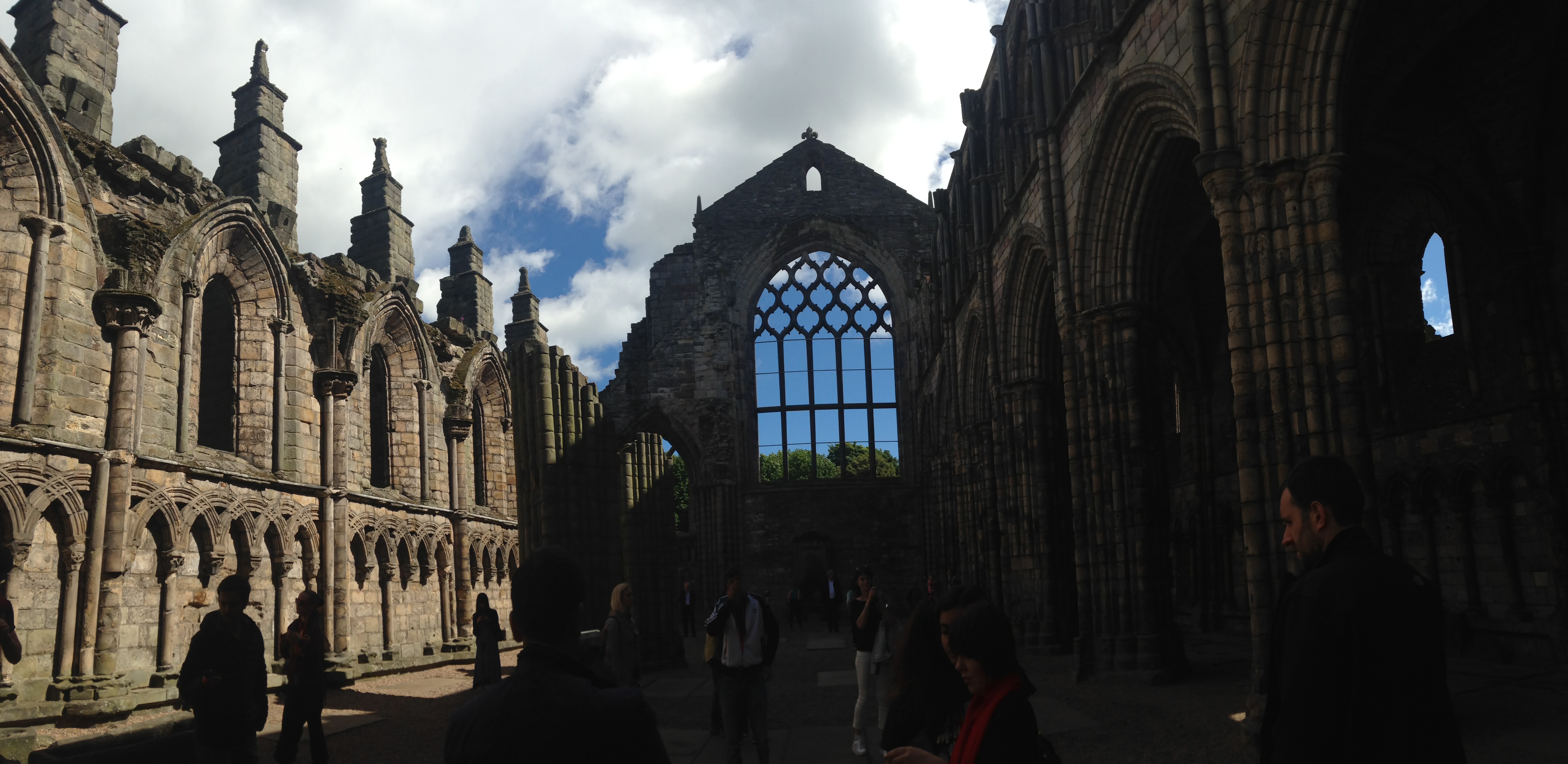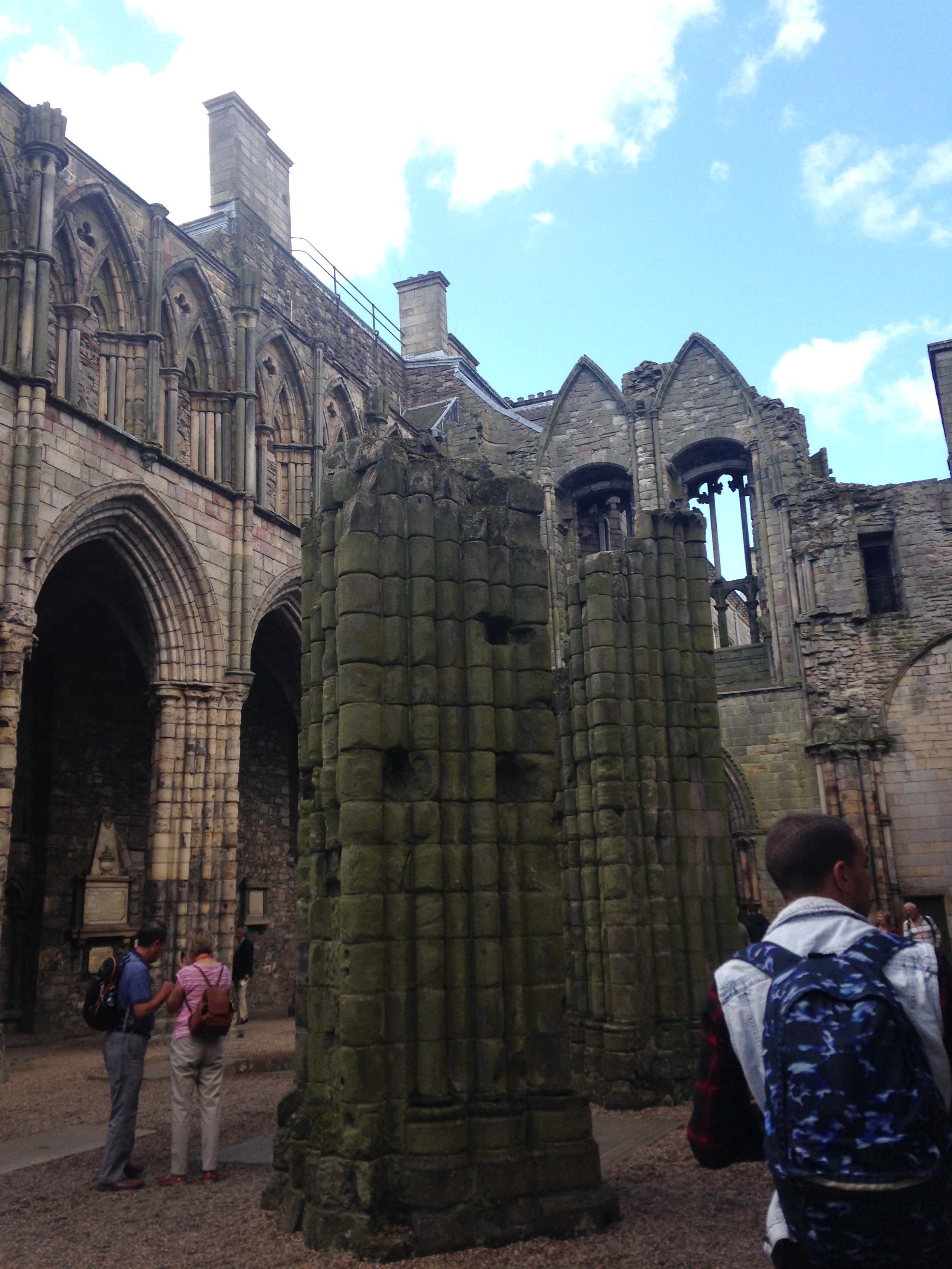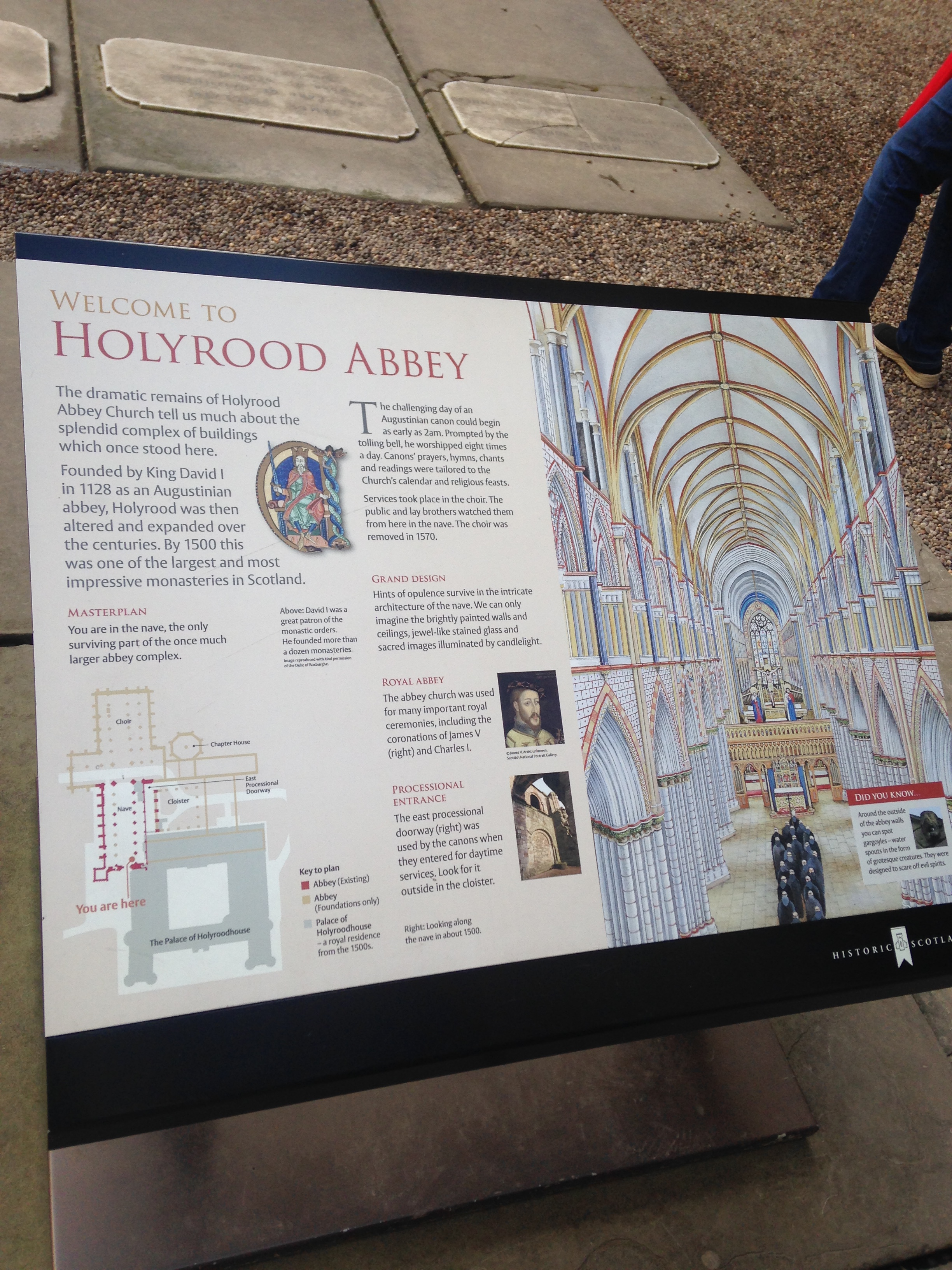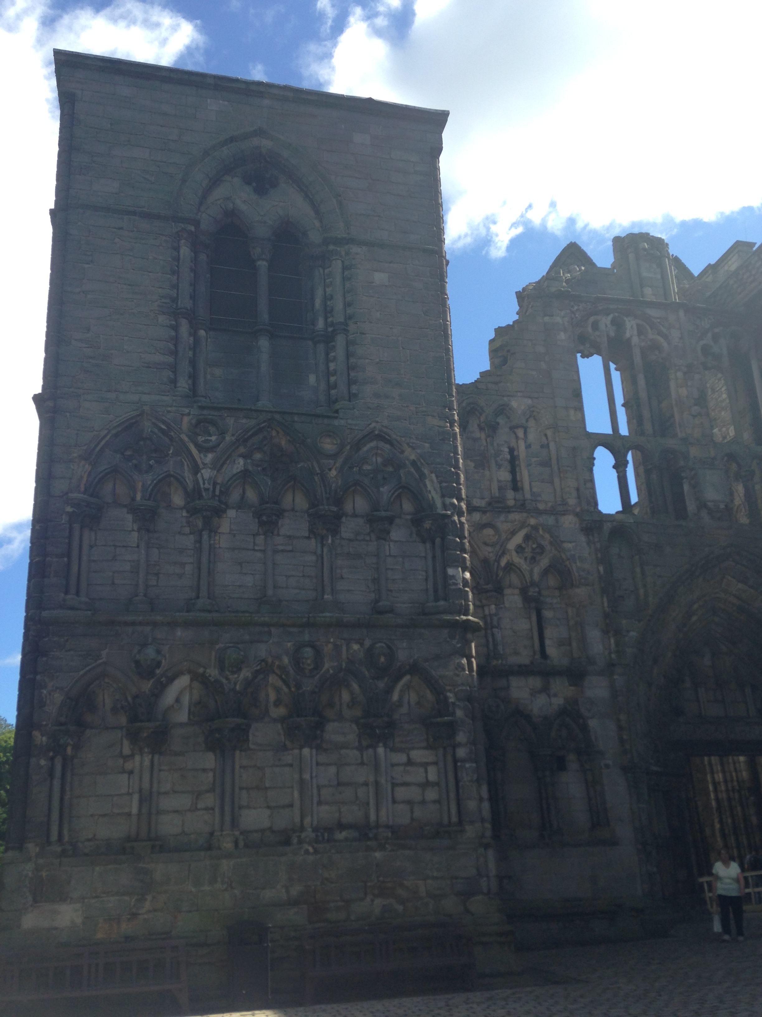 I bought some postcards in the gift shop that featured Mary. I don’t know why she is so fascinating to me. We also got to see a gallery of the current Queen’s dresses, the adjacent ruins of the attached Abby and walked through the Gardens where the Queen hosts a party every July.
